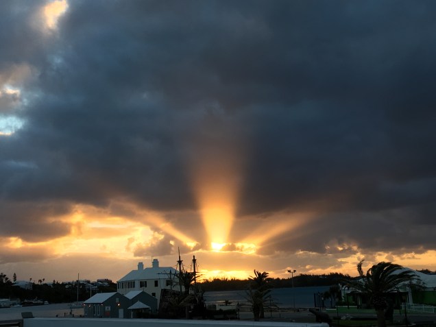 Dawning February 24, 2017lillian Sun struggles behind shrouded sky. Three rays burst through darkness, beacons that proclaim there shall be hope this day. Photo taken at dawn from deck of our rented apartment in Bermuda. No filters – no photoshopping. It was truly glorious. Share this: Click to share on Facebook (Opens in new window) Facebook Click to email a link to a friend (Opens in new window) Email Click to share on Pinterest (Opens in new window) Pinterest Like Loading... Related
