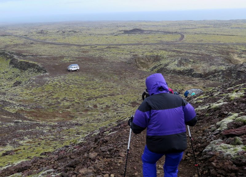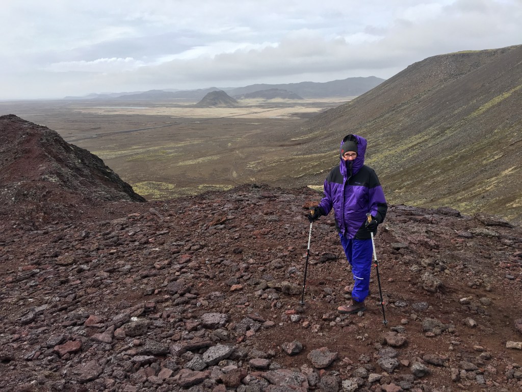 Wearing sturdy hiking boots, using walking sticks for leverage, we climbed to the top of Stora Eldborg, an extinct volcanic crater. At its peak, buffeted by winds, our travel van below was a mere dot. Craters in the distance looked like small molehills. On the descent, our sticks helped take the pressure off our knees.