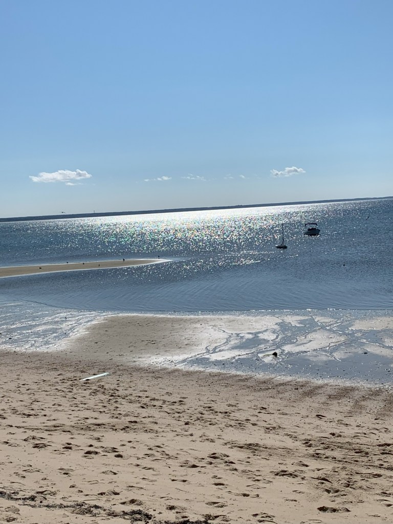 Photo: glistening water from our deck in Provincetown this morning.We are in the beginning of our annual two weeks in this beautiful place. Thankful for every day.